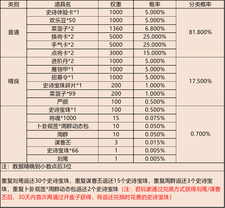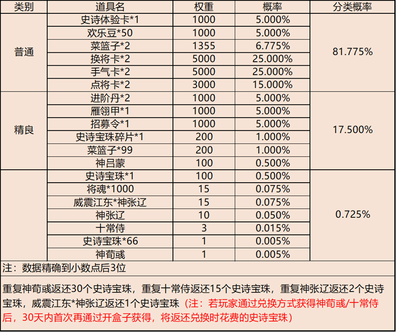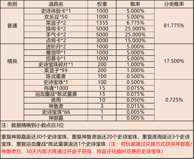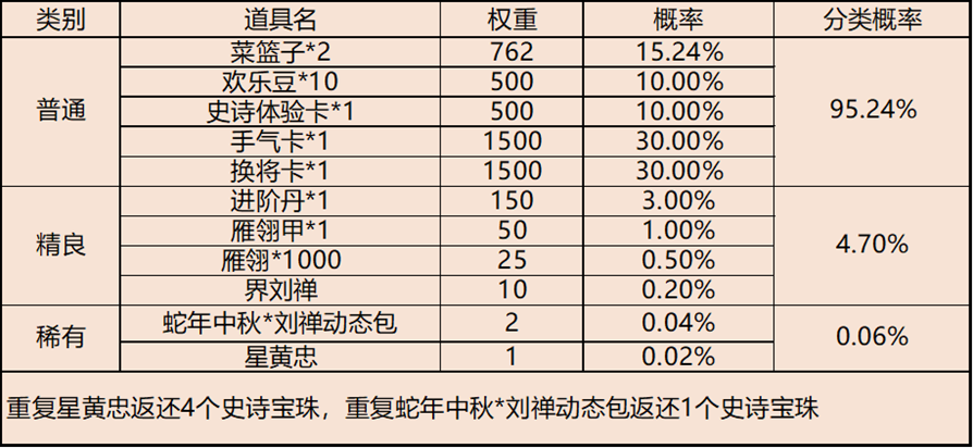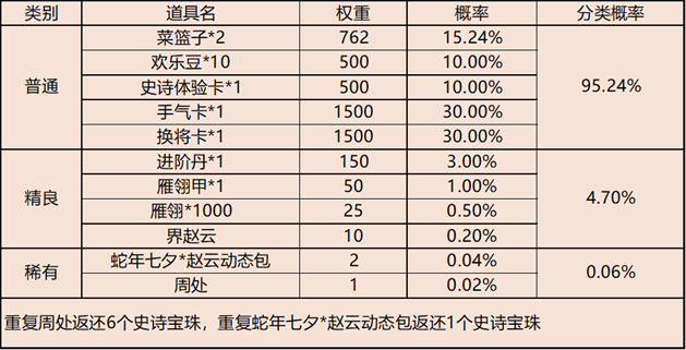 银币礼包概率公示:
